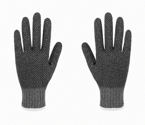 16-202 Guante japonés con puntos de PVC / Gris con puntos negros de PVC en palma
