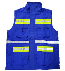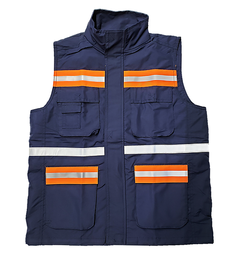 CHALECO 100% POLIESTER, CUELLO ALTO REDONDO, 4 BOLSAS ADELANTE Y UNA CHIQUITA ATRAS, CON CIERRE, FORRO DE MALLA.