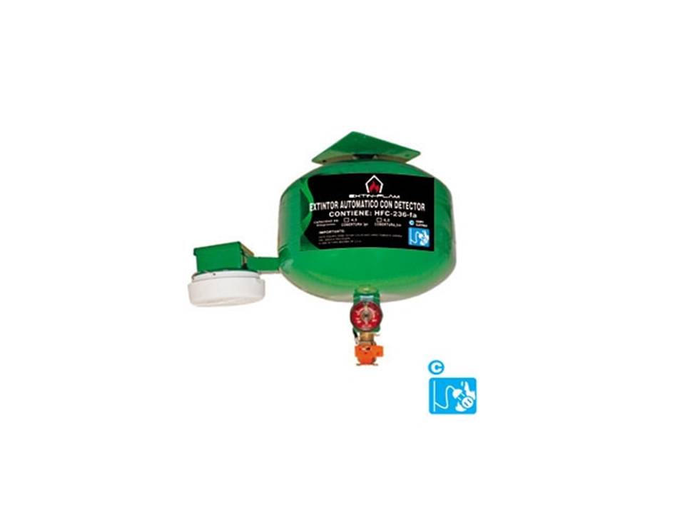 Extintor automático de presión contenida, a base de hexafluoropropano (HFC-236-FA).