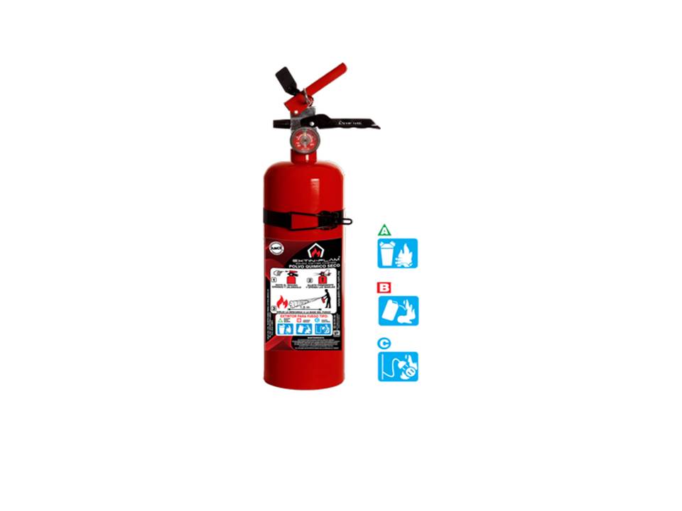 • Extintor portátil de presión contenida a base de Polvo Químico Seco (PQS) , al 75% de fosfato monoamónico.