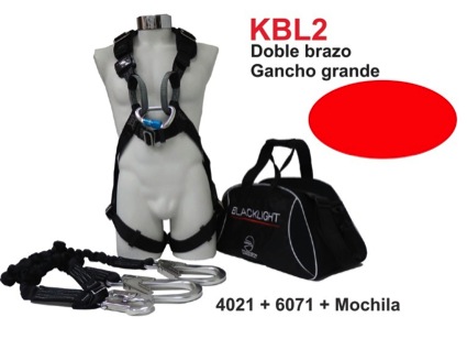 KBL2-1 - Kit Blacklight Contra Caídas 402-40 cojín en hombros, anillo espalda, mosquetón frontal, 6071-1.80 Amortiguador interno/doble Bzo/ ganchos grandes