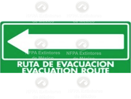 SEÑAL RUTA D EVACUACION IZQ FOTO NF028N ESPAÑOL INGLES ESTIRENO PROTECCION CIVIL