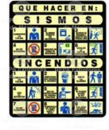 SEÑAL QUE HACER EN SISMOS E INCENDIO NF030F ESTIRENO PROTECCION CIVIL